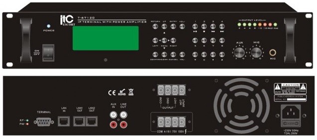 1 микр.+ 1 лин. вход, запуск mp3, 2U, мощность 120 Вт, выход  70В/100В/4-16 Ом, сетевой вход RJ45. Протоколы TCP/IP, UPD, IGMP, аудио режим 16-бит стерео CD звук.