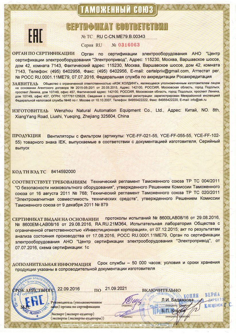 - Вентилятор с фильтром 21 куб.м./час (YCE-FF-021-55)