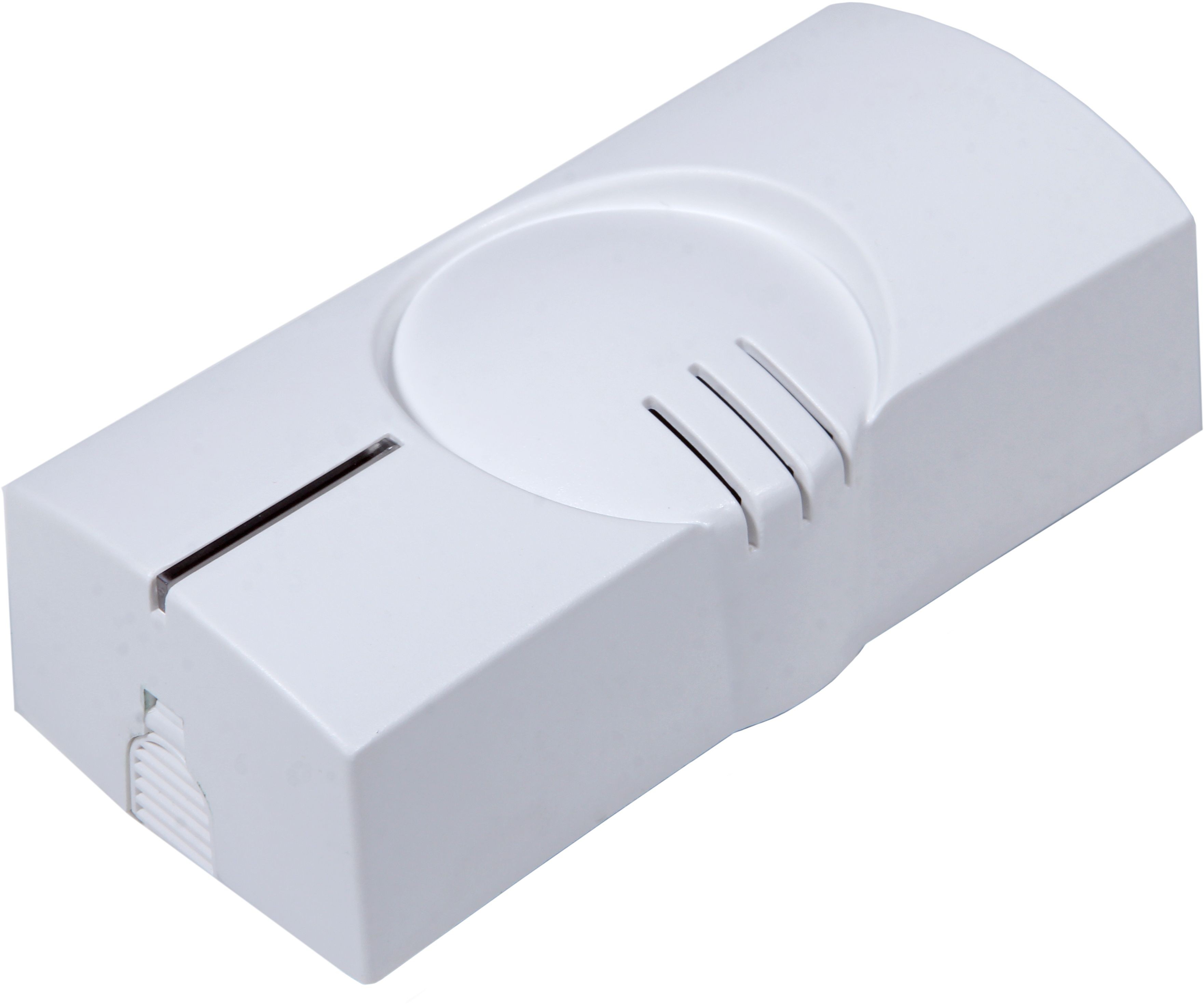 Извещатель акустический разбития стекла радиоканальный, f-раб.433МГц до 800 м, дальность обнаружения 6м, питание 3,6В батарея АА (ER 14505), t-раб.-30...+50°С, 48х104х34мм