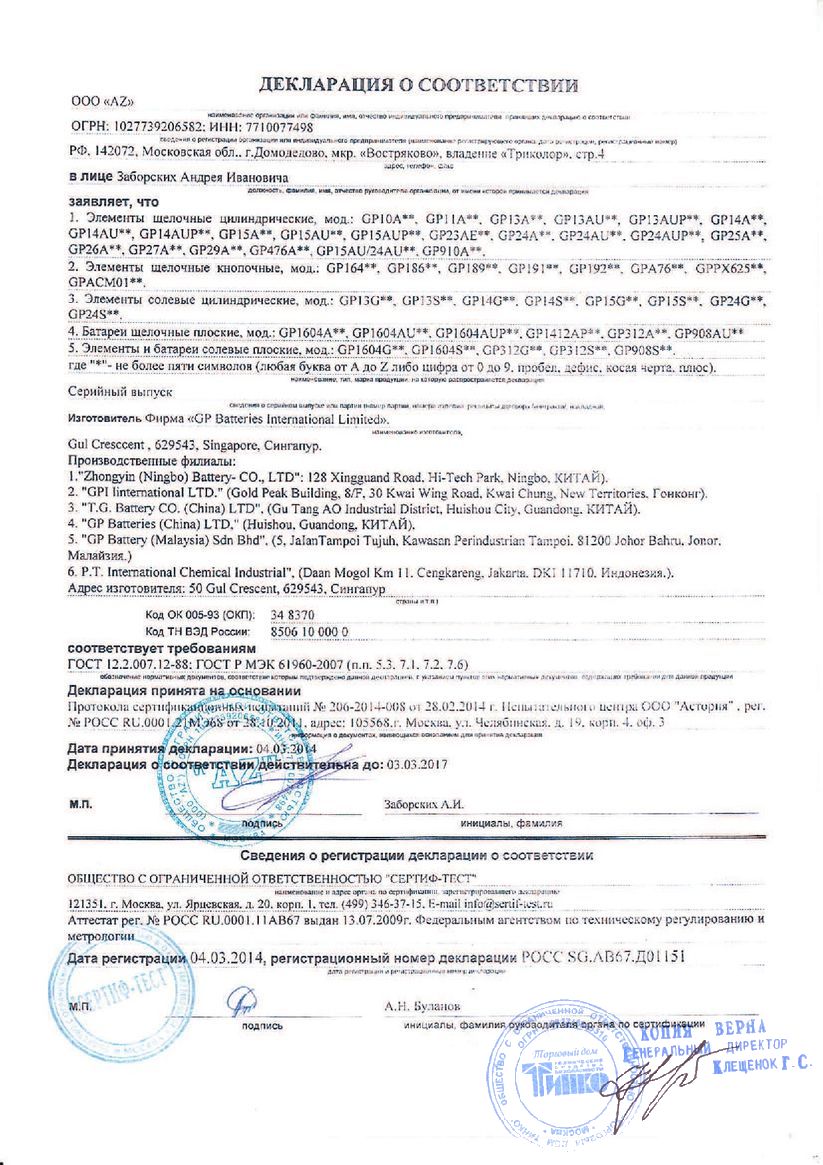 Элемент питания, 9В, типоразмер 6LR61/6F22, 26.5х17.5х48.5мм