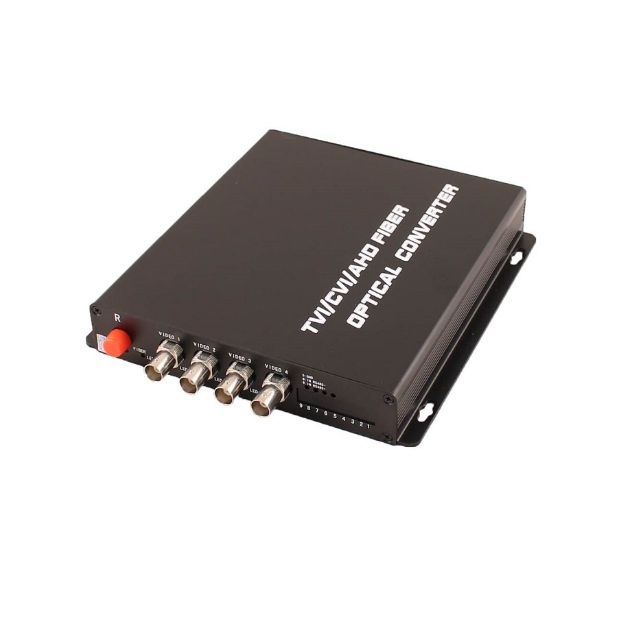 Приемник видео HDCVI/HDTVI/AHD/CVBS 4 канала по одномодовому оптоволокну до 20км; Максимальное разрешение 1080p; Рабочая длина волны 1310нм (одно волокно); Оптический разъём: FC; DC5В/2000мА(БП в комплекте); - 40°...+75°C; 167x28x172мм