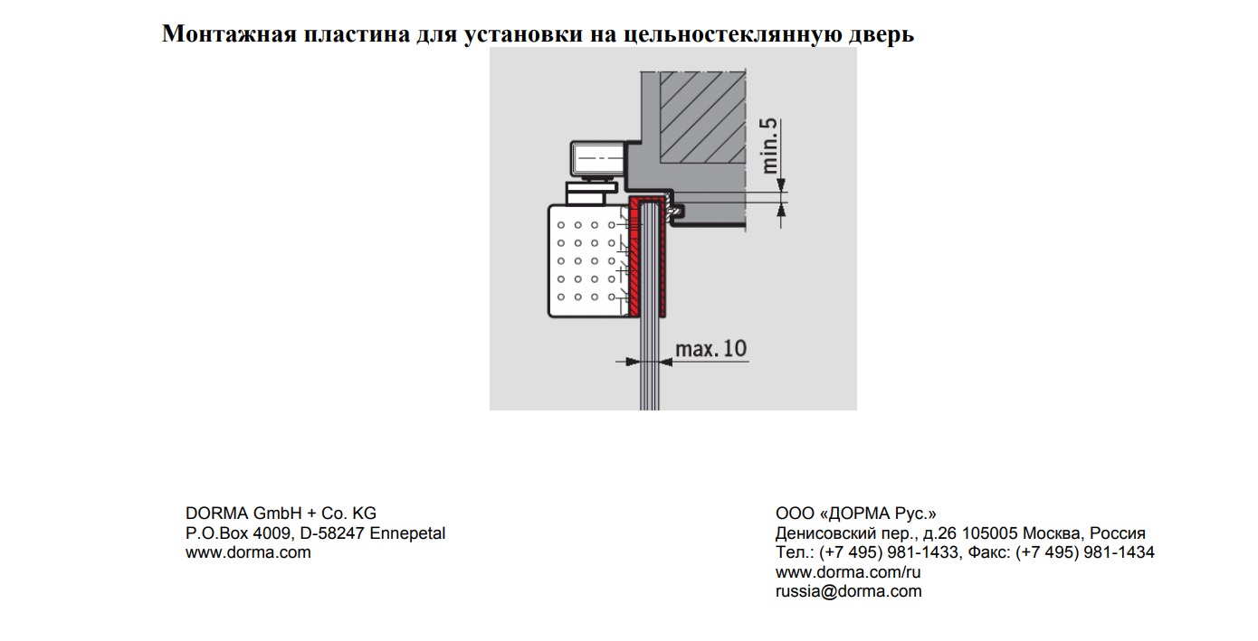 - Пластина для установки TS-92 на стеклянную дверь (42000101)