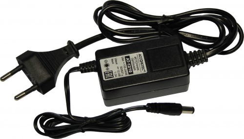 Источник вторичного электропитания стабилизированный, напряжение питания от сети переменного тока частотой 50 Гц 100...240 В, выходное напряжение постоянного тока 11.8...12.2 В, номинальный ток нагрузки 1 А, максимальный ток нагрузки 1,5 А, защита от короткого замыкания, температура эксплуатации -10...+40°С,  габаритные размеры 64x35x27 мм, пластиковый корпус