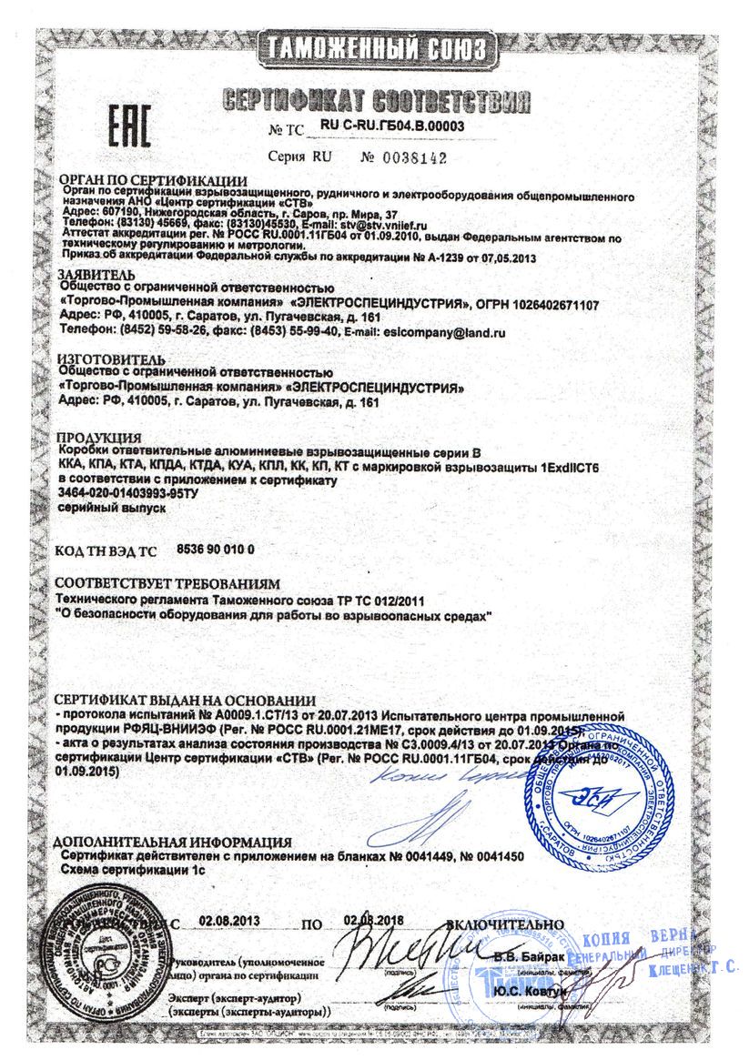 Коробка взрывозащищенная серии В предназначена для выполнения соединений и ответвлений проводов и кабелей с алюминиевыми и медными жилами в стальных водо - газопроводных трубах ( по ГОСТ 3262 ) в электросетях переменного и постоянного тока с номинальным напряжением 660 В включительно, прокладываемых во взрывоопасных зонах всех классов.