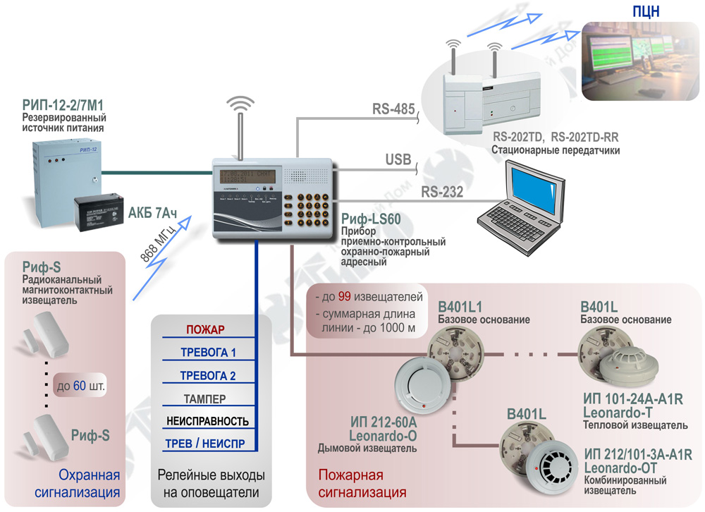 - Охранные и пожарные сигнализации