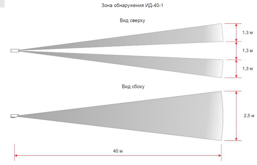 Извещатель охранный инфракрасный пассивный ИД-40-1 предназначен для выдачи тревожного извещения при пересечении нарушителем зоны обнаружения.