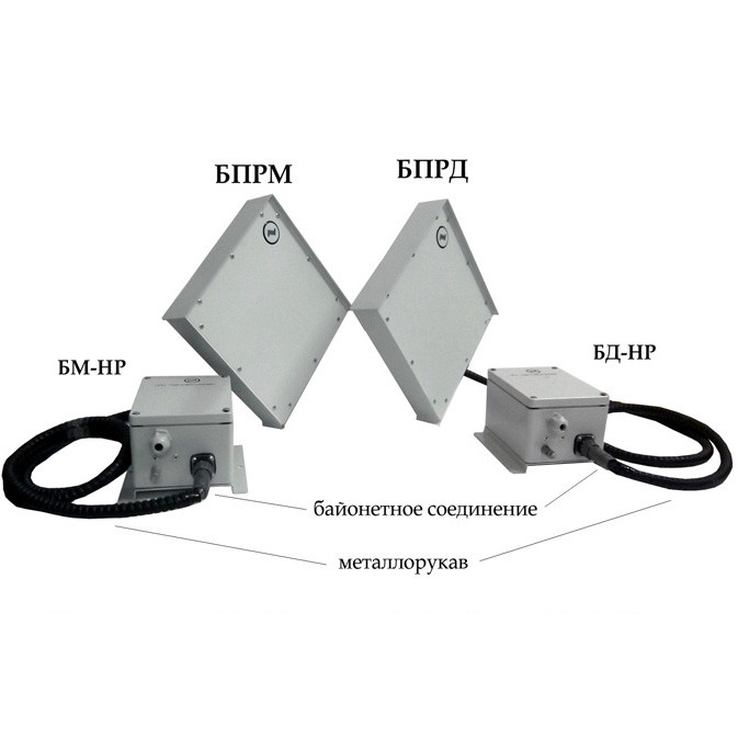 Извещатель радиоволновой, двухпозиционный, зона обнаружения 25…500 м сечением 4х3 м, угол раскрыва антенн 9°, выбор синхронизации (по радиолучу или по выделенному проводу), U-пит.10…36 В, I-потр.40 мА, IP65, t-раб. -50…+50°С, габаритные размеры 210х210х50 мм (БПРМ) 210х210х50 мм (БПРД). В комплекте блоки подключения.