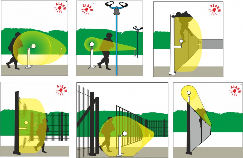 - обнаруживает нарушителя при любом пространственном маневре во время преодоления рубежа охраны;