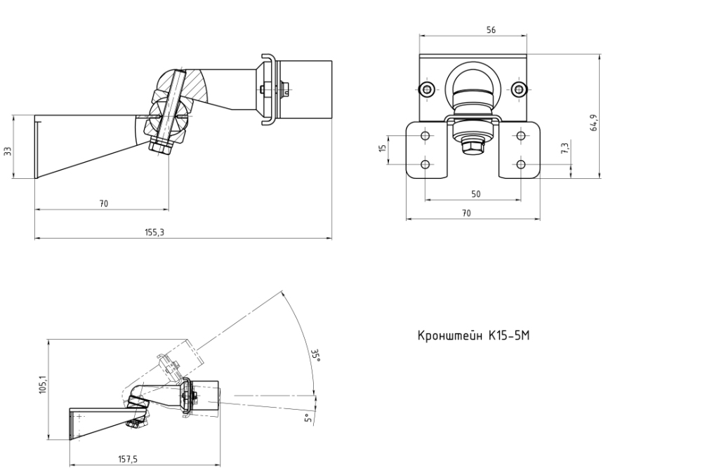Кронштейн "К15-5М" предназначен для крепления извещателя "СПЭК-7-2" и "СПЭК-7-6" и их модификаций. Он позволяет расширить возможности юстировки извещателя.