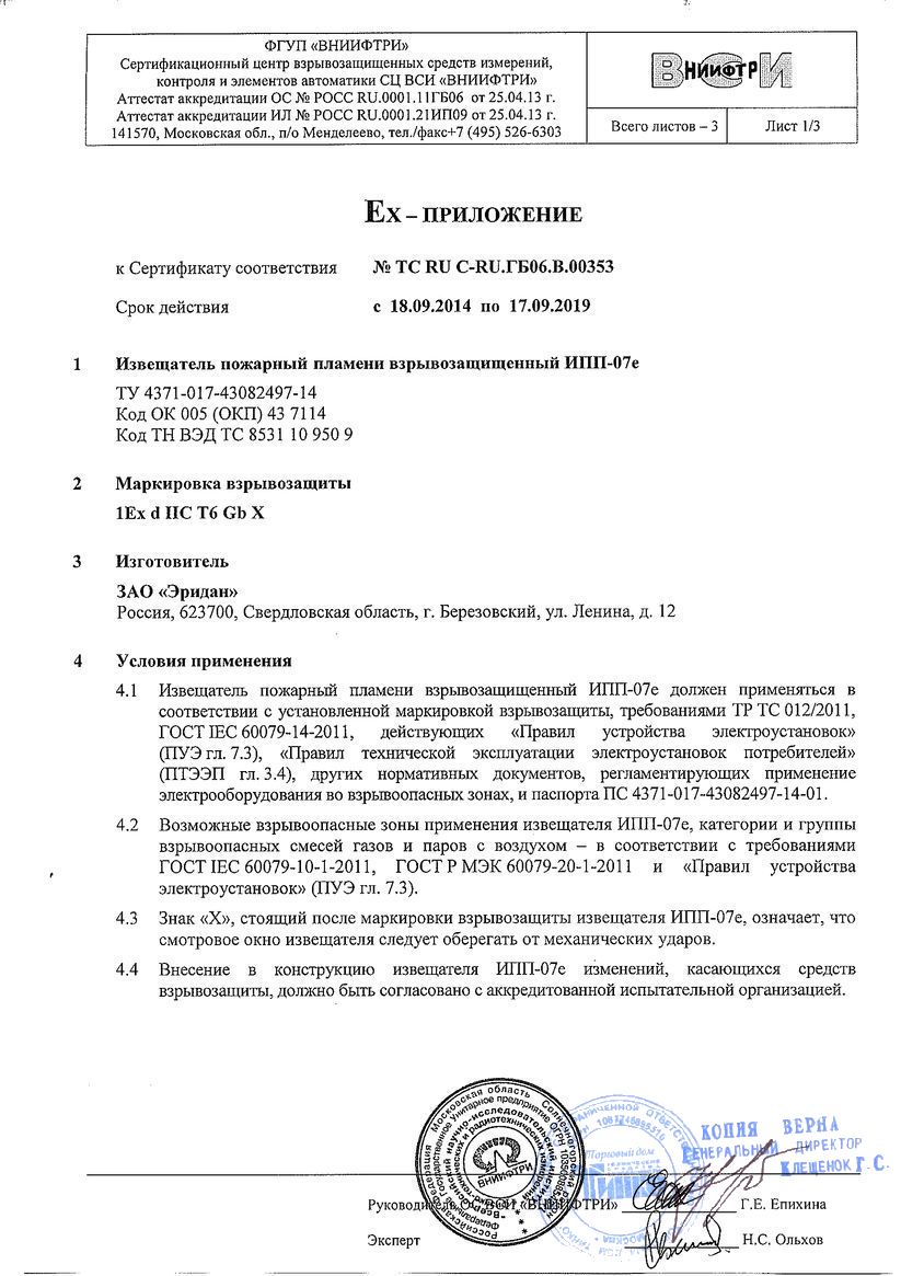 - Извещатели пламени взрывозащищенные