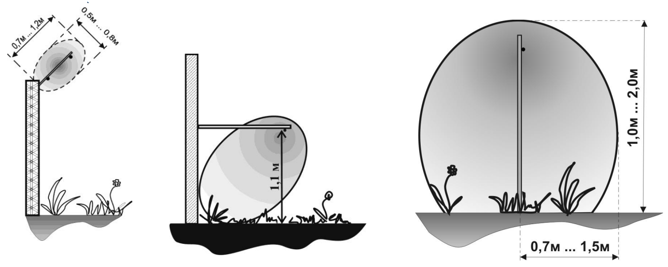 - равномерность зоны обнаружения (практически неизменное сечение) на участке где провода чувствительного элемента равноудалены от поверхности земли и других предметов.