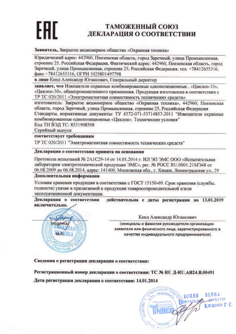 Извещатель охранный обрывного типа; запас микропровода 1000м; релейный выход; U-пит.9…30 В; I-потр.9 мА; t-раб.-40...+65°C; 55х90 мм