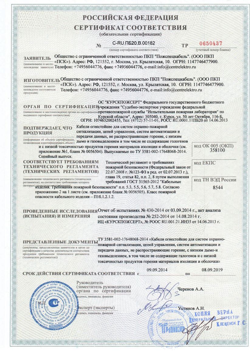 - Кабели для систем охранно-пожарной сигнализации1219