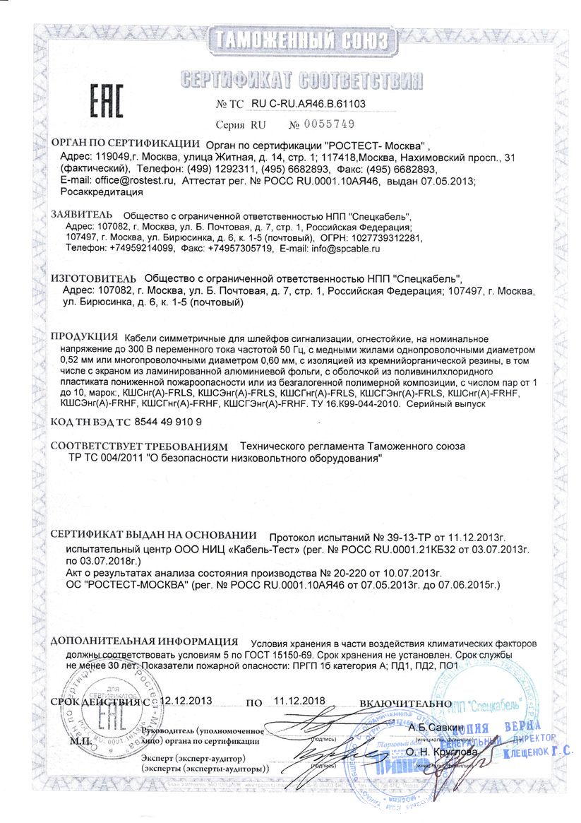 - Кабели для систем охранно-пожарной сигнализации1219