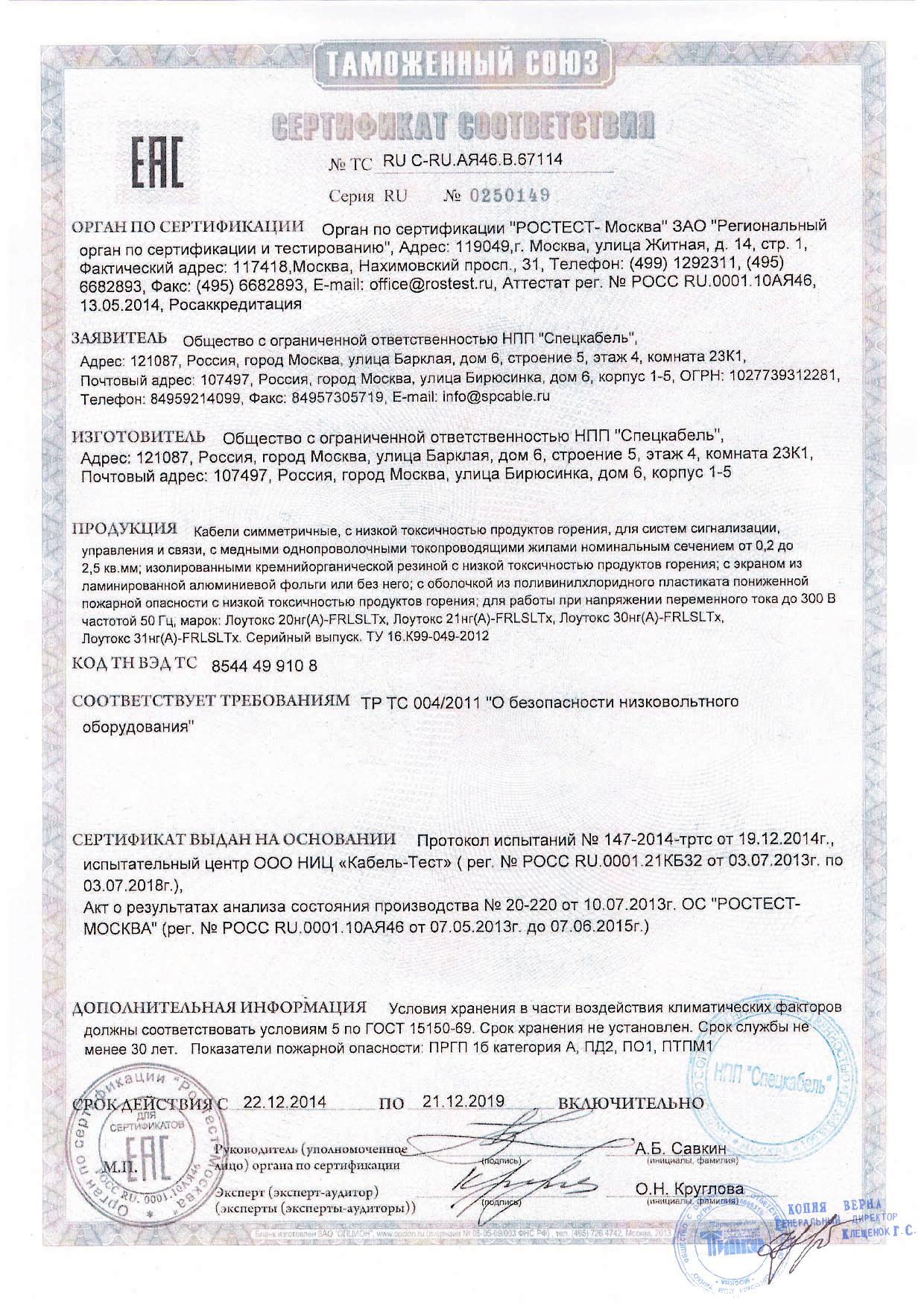 - Лоутокс 31нг(А)-FRLSLTx 3х2х0,52