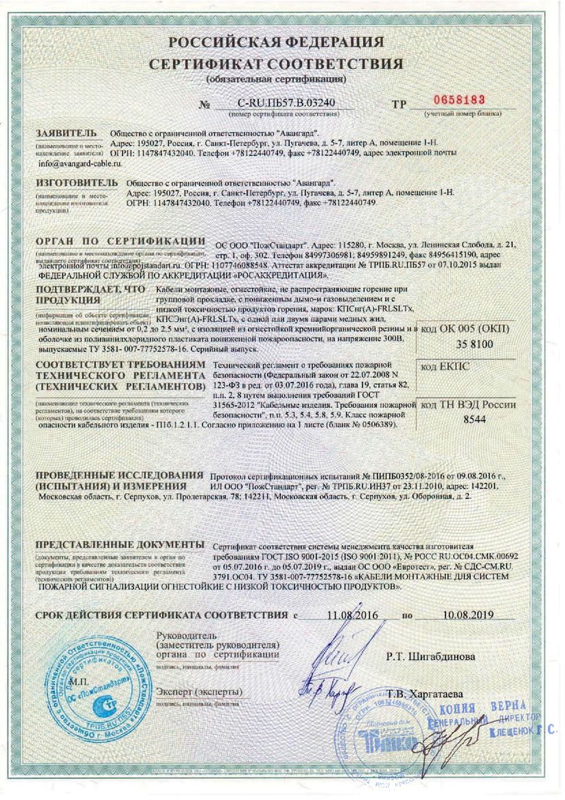 - Огнестойкая кабельная линия (ОКЛ) Гефест10