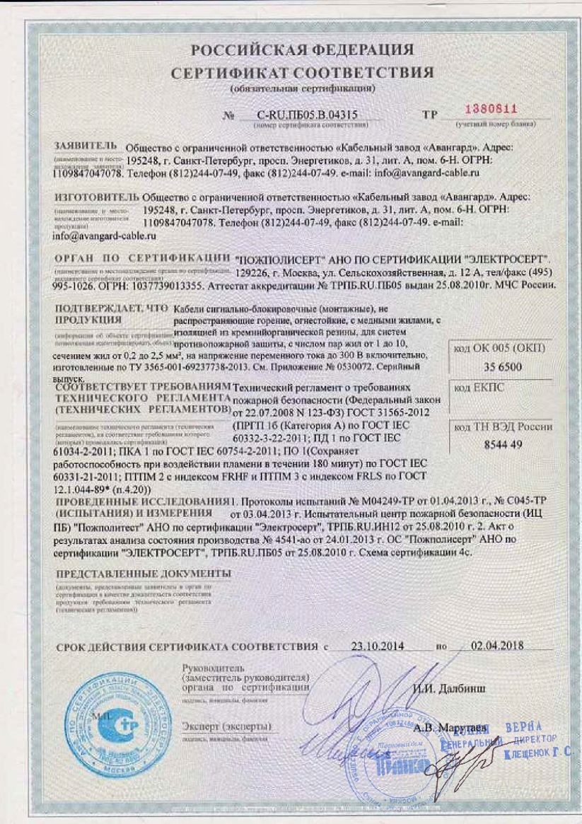 - Кабели для систем охранно-пожарной сигнализации