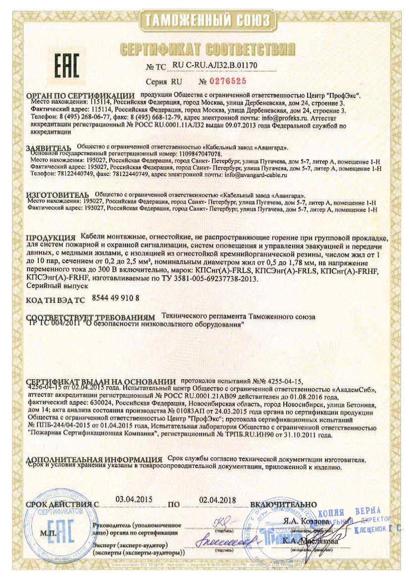 - КПСнг(А)-FRLS 1х2х1,0 (Авангард)