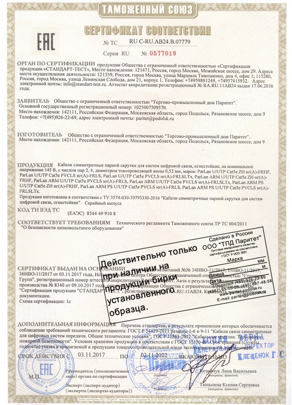 - ParLan ARM PS U/UTP Cat5e PVCLS нг(А)-FRLSLTx 2х2x0,52