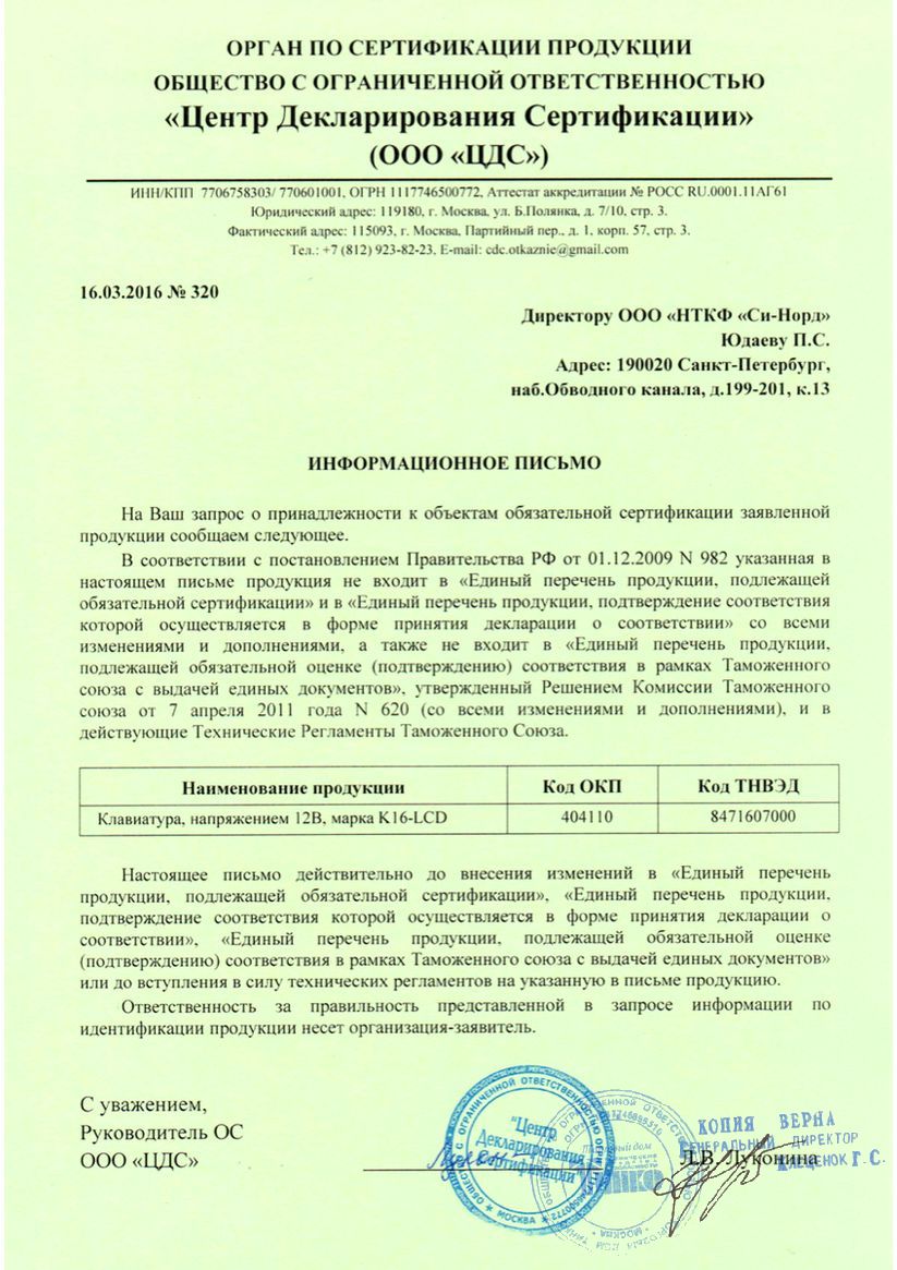 Проводная клавиатура для контрольных панелей серии Норд, Hunter, Captain