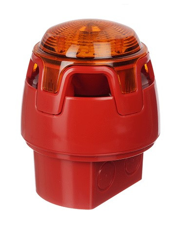 Оповещатель свето-звуковой, 109дБ, 32 тона, строб-вспышка, корпус красный, вспышка красная, линза желтая, Uпит.12...29В, Iпотр.40мА, tраб.-25...+70°С, 100х122мм, высокая база IP65 «First Fix»