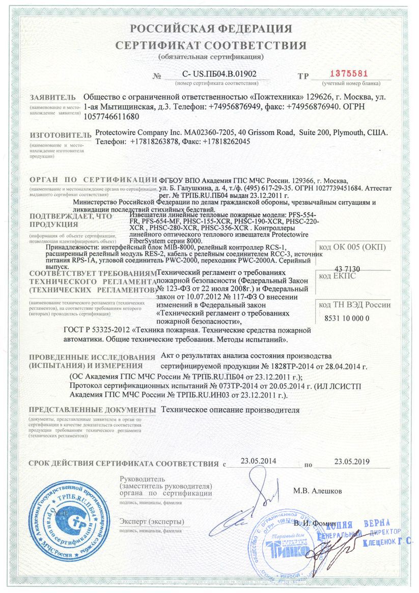 Извещатель пожарный тепловой линейный PHSC представляет собой кабель, который позволяет обнаружить источник тепла в любом месте на всем его протяжении, т. е. является единым датчиком непрерывного действия. Термокабель PHSC состоит из двух стальных проводников, каждый из которых имеет изолирующее покрытие из теплочувствительного полимера. Проводники скручены вместе по всей длине для создания между ними механического напряжения. Провода спирально обмотаны защитной лентой и помещены в оболочку, предназначенную для защиты от механических повреждений и неблагоприятных условий окружающей среды. При достижении критической температуры терморезисторный материал размягчается, провода начинают контактировать друг с другом, тем самым, инициируя сигнал пожарной тревоги. Через кабель постоянно проходит контрольный ток.