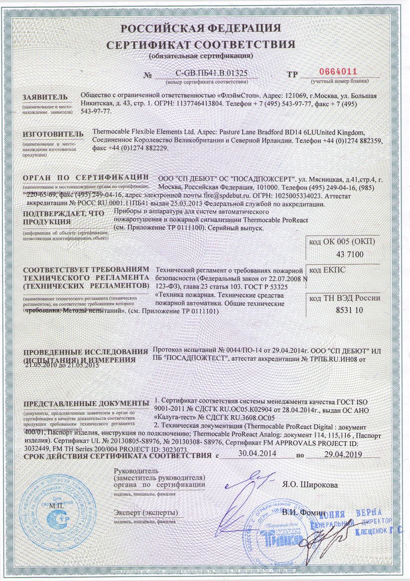- Линейный тепловой извещатель (термокабель)