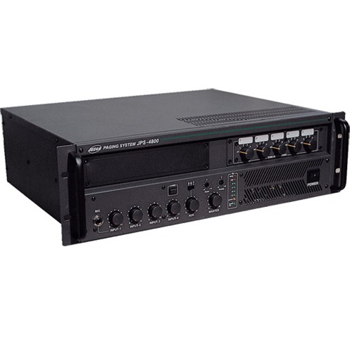 Микшер-усилитель, 360 Вт, 100 В, 5 микр./3 лин., блок сирен, селектор 5 зон, функция приоритетов, аварийный режим включения, возможность установки CD, тюнера, касс. деки, цифр. блока сообщений, питание 24/220 В