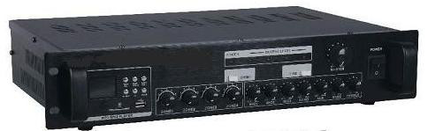 Усилитель под RACK стойку со встроенным модулем MP3 (USB/SD-карт), 120Вт. ЖК-дисплей, 4 раздельных зоны оповещения, вход для подключения к телефонной линии, вход для пожарной\тревожной сигнализации; 3 микрофонных входа; выход: 100В / 4Ом/8Ом/16Ом;  Питание 220В/50Гц; резервное - 24В;  485x310x89 мм; вес: 10 кг.