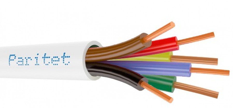 Кабель с однопроволочными медными жилами, с изоляцией и оболочкой из ПВХ пластиката, для внутренней прокладки в условиях эксплуатационных изгибов.
