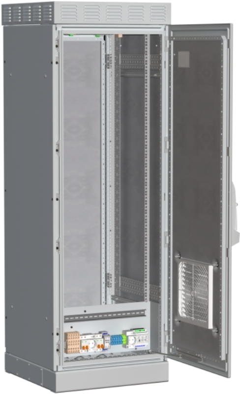 Шкаф монтажный с обогревом и вентиляцией  для установки в нём телевизионного либо другого электронного оборудования, устанавливаемого в 19-дюймовую стойку;  AC220В ± 15% /2,8A; IP55; -50° ... +50°С; 1800х605х695 мм; ( Максимальная мощность тепловых потерь устанавливаемой в шкаф аппаратуры 800 Вт)