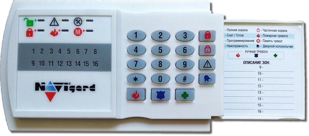 Объектовый прибор в корпусе клавиатуры, 2 (4) ШС, 2 выхода типа "ОК", 1 выход типа "СК", до 16 кодов пользователей, до 16 радиоканальных пультов ключей NV PT 11/44, системная шина для подключения периферийных устройств, U-пит.9...15 В, I-потр.50 мА, t-раб.-25...+55°C, 160х95х25 мм