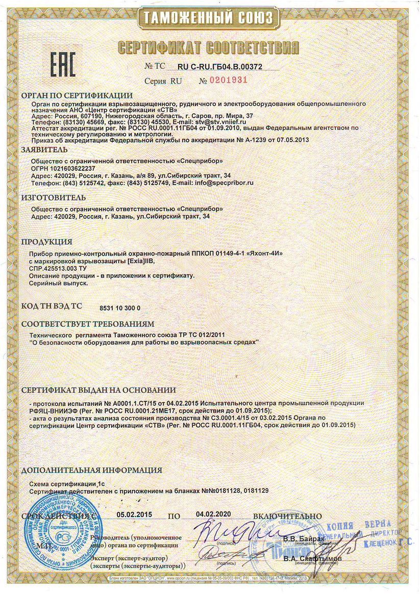 - Приборы приемно-контрольные взрывозащищенные