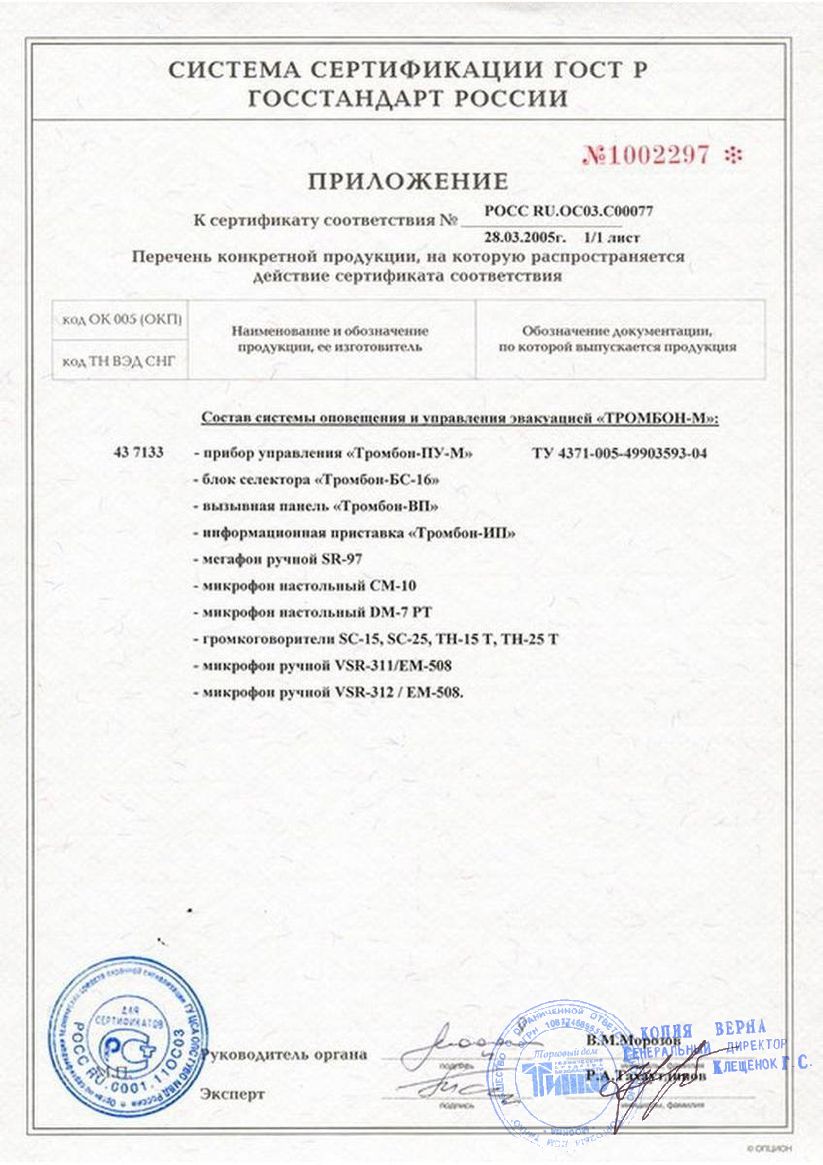 «Комплект №2 кабелей» предназначен для соединения цепей звукового сигнала, основного (220В) и резервного (24В) питания между разными приборами Системы оповещения марки «Тромбон».