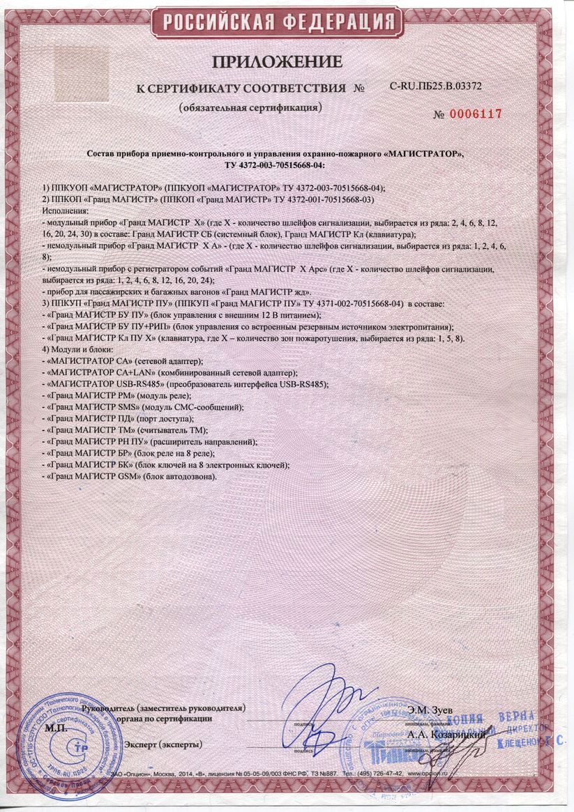 Предназначен для совместной работы с ППКОП «Гранд-Магистр-2, 4, 6, 8, 12, 16, 20, 24, 30»