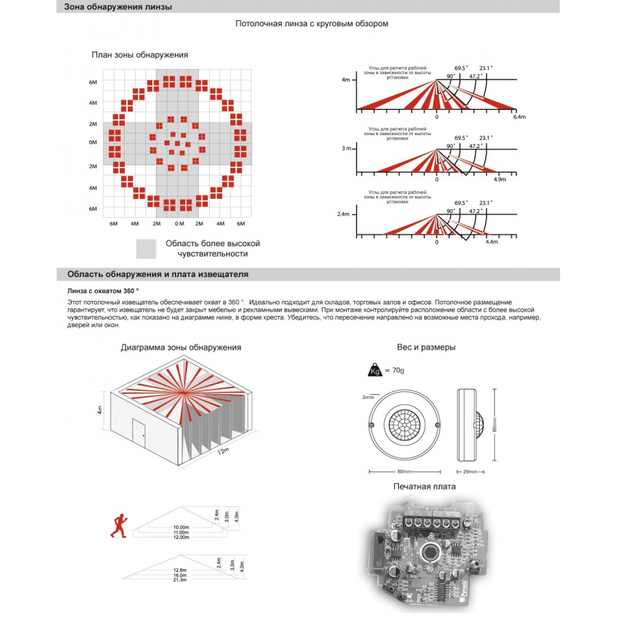 ИК, потолочный, 12 м при высоте установки 4 м, темп.компенсация, счет.импульсов, Uпит9...16В, Iпотр.50мА, 80х29мм