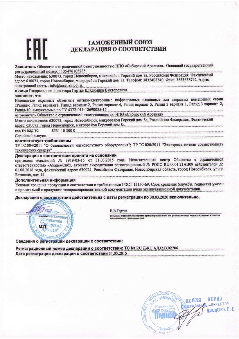 Извещатель охранный "Рапид-3" вар.4 предназначен для обнаружения проникновения в охраняемое пространство закрытого помещения и формирования тревожного извещения. Извещатель охранный "Рапид-3" вар.4 предназначен для использования в системах охраной сигнализации