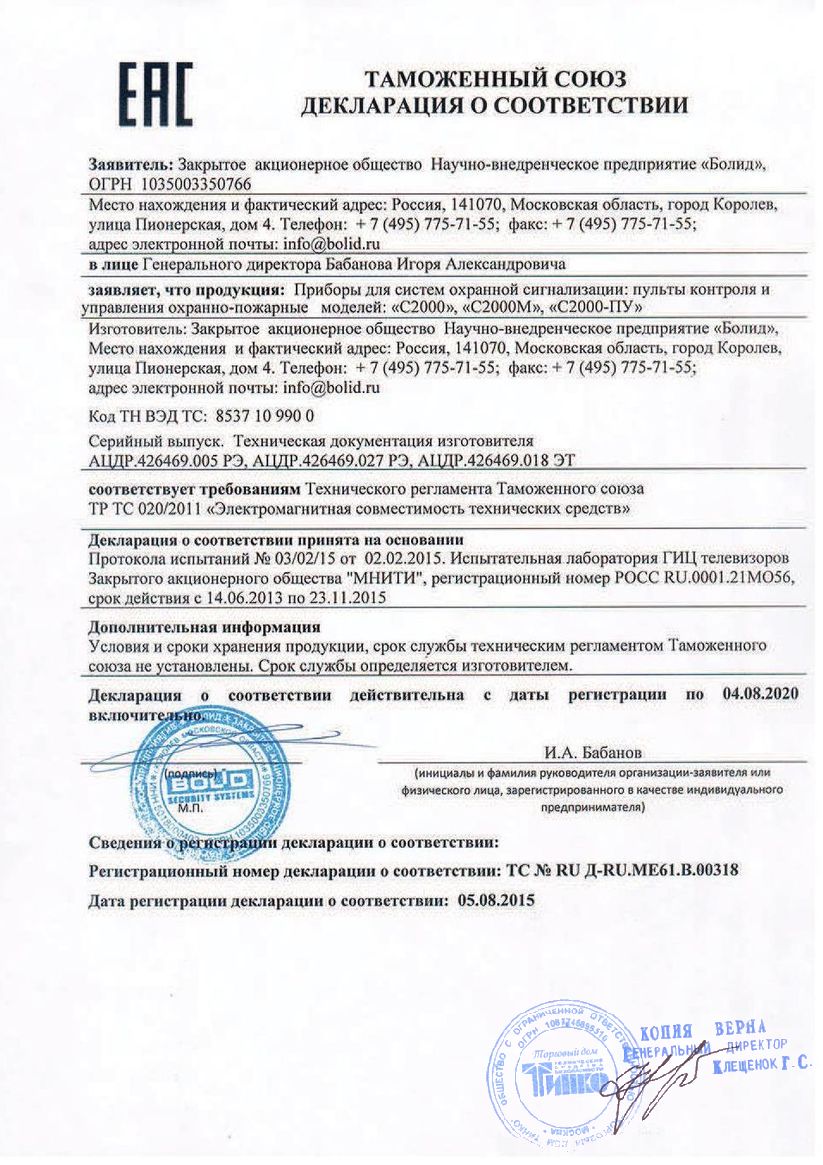 Возможность передачи извещений на пульт охраны с помощью коммуникационных блоков "С2000-ИТ", "УО-4С", "С2000-PGE" и "С2000-ПП". Возможность подключения радиопередатчика ATS100 радиосистемы охраны LARS, RS-202TD радиосистемы охраны "Риф Стринг 202" ("LONTA 202") или TRX-150 для передачи извещений по радиоканалу