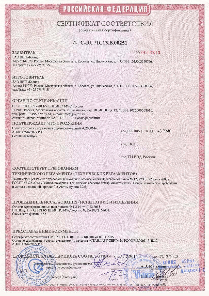 Пульт контроля и управления охранно-пожарный "С2000М" предназначен для работы в составе адресной системы охранно-пожарной сигнализации и управления противопожарным оборудованием. Совместно с приборами ИСО «Орион» он может выполнять функции блочно-модульного прибора приемно-контрольного охранного и пожарного, прибора управления световым, звуковым и речевым оповещением, газовым, порошковым аэрозольным и водяным пожаротушением, противодымной защиты, инженерными системами здания. Информационное взаимодействие блоков осуществляется по проводной линии связи RS-485. Функции прибора могут расширяться путём подключения дополнительных блоков.