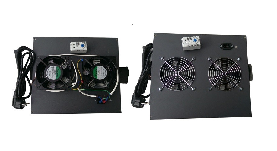 Блок вентиляторов охлаждения 19" с выносным термореле, 2 вентилятора, монтаж в крышку шкафа