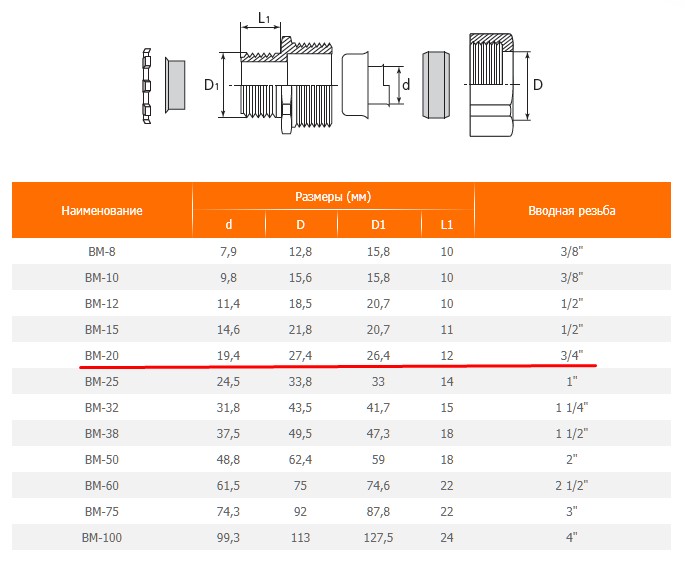 - Муфта вводная для металлорукава ВМ (РКн)-20 (3/4")