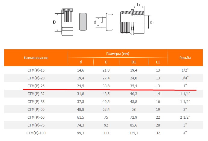 - Муфта соединительная резьбовая СТМ(Р) (РКв)-25 (1")