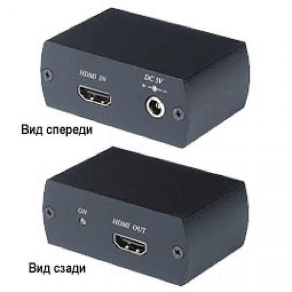 Усилитель HDMI-сигнала (удлинитель); Позволяет передать HDMI-сигнал на расстояние до 50 м; 1080р или 1920х1200 для PC; Полоса пропускания 1,65 ГГц; HDCP; -40...+55°C