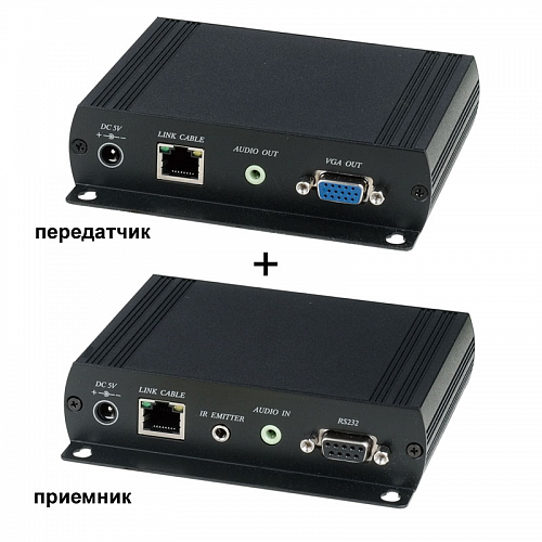 Комплект (приёмник и передатчик) VGA; Клавиатура, "Мышь", Flash Card, HDD (4 USB2.0); RS232; Стерео Аудио и ИК-управление на расстояние 150 м. по кабелю cat5 (RJ-45), разрешение VGA до 1920х1200, скорость передачи данных до 480Мбит/с (High Speed). DC 5В/1.1А; в комплекте блоки питания 220В/5В, 2А (2 шт.); 125х120.5х30мм. -40 до +55С; Устройство предназначено для работы с PC и регистраторами на базе ОС Windows/Linux с драйверами для работы USB-хаба.