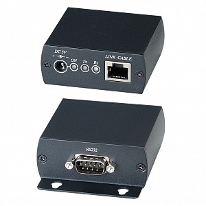 Комплект (передатчик + приемник) для передачи сигнала RS232 на расстояние 2000м по кабелю CAT5; Полная дуплексная передача данных; -40°...+55°C; 74.5х27х67мм