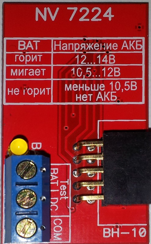 Модуль NV 7224 предназначен для контроля/защиты аккумуляторной батарей от глубокого разряда и передачи информации во внешние цепи при работе с NV 7220.