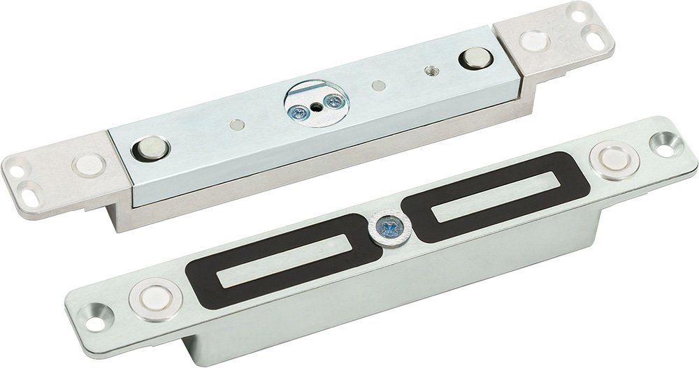 Сдвиговый электромагнитный врезной замок. Подходит для горизонтальной и вертикальной установки. IP54, встроенный датчик контроля положения двери (геркон), питание от 10,8 до 27,6В DC, -40...+40°С. Габариты: корпусной части 201,5х25x25 мм, якорной части: 201,5х25x25 мм.