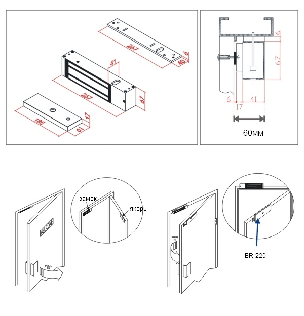 Сила удержания 600 кг, индикатор работы замка, датчик положения замка Н.О./Н.З, 12/24 В, 500/250 мА, 267х67х41 мм