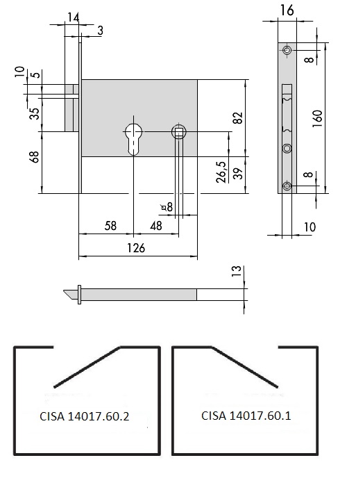 Для алюминиевых дверей. Оцинкованные корпус и лицевая пластина. Напряжение 12 В переменного тока , не реверсивный, фиксация защелки в открытом состоянии, расстояние от торца двери до середины цилиндра 60 мм.