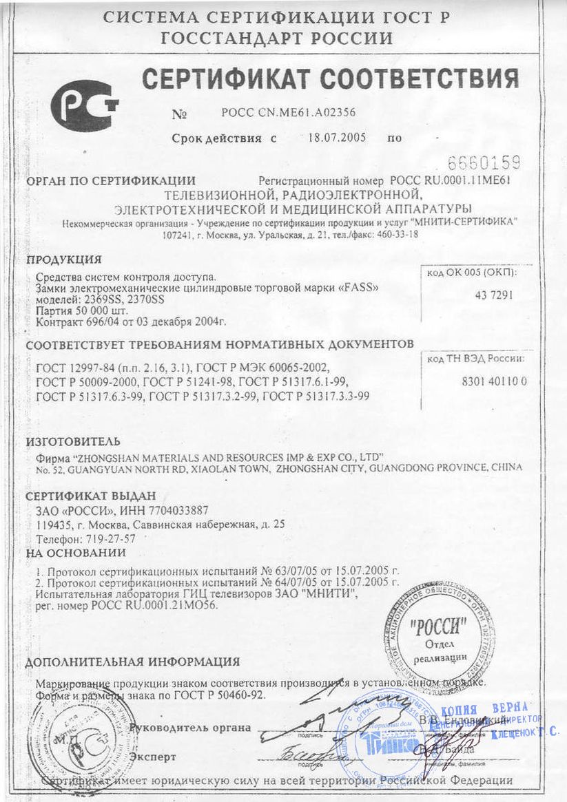 Замок электромеханический